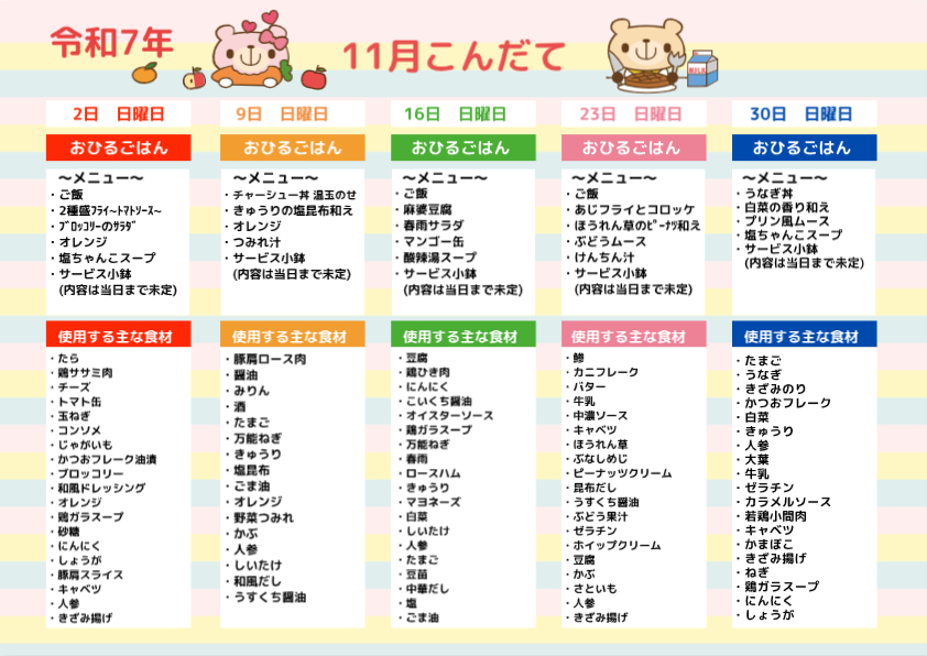 多世代参加型こども食堂 とまり木 『11月の献立』