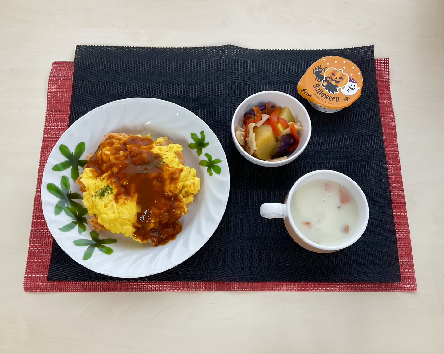 本日は🎃ハロウィン🎃といことでオムライスやかぼちゃプリンなど普段あまり出ないようなメニューをご用意していただきました!